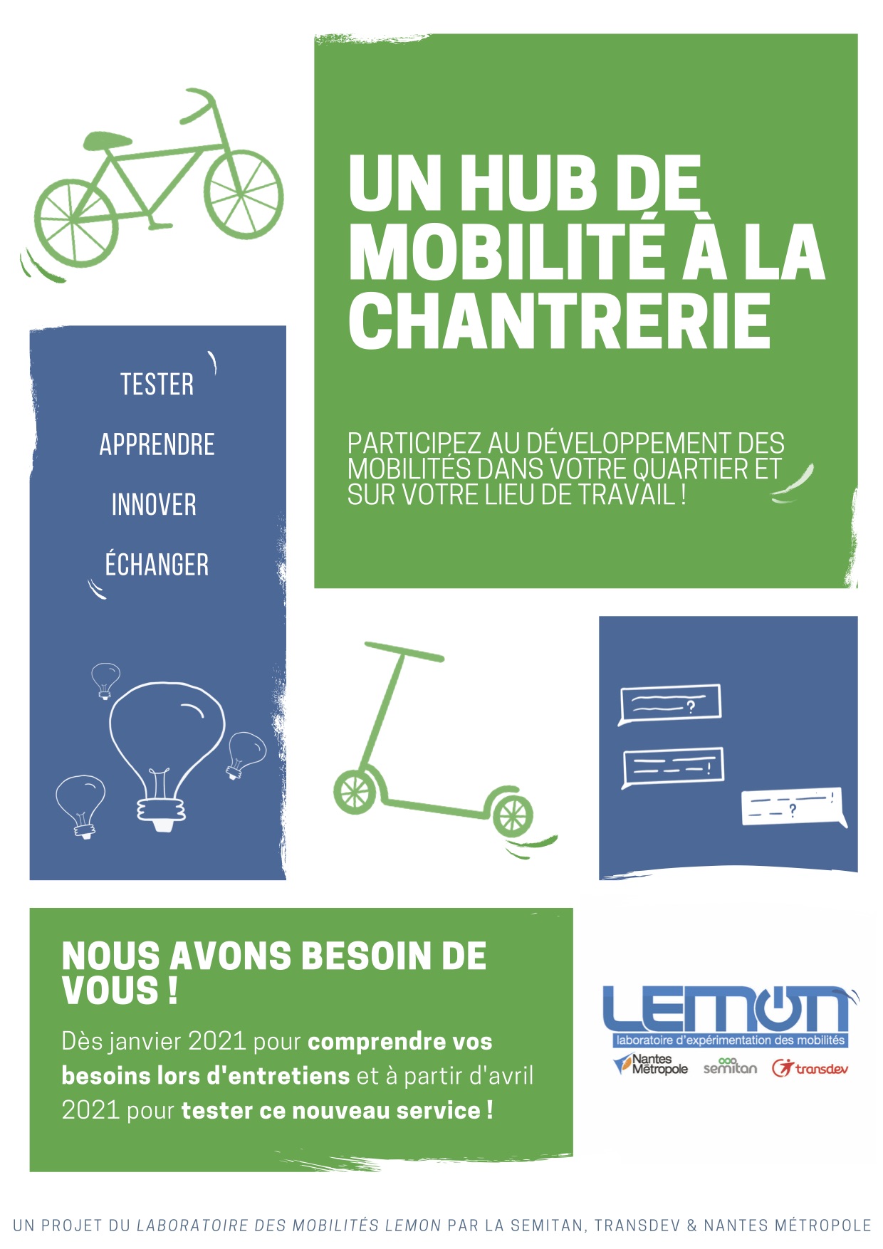 LEMON (le laboratoire des expérimentations des mobilités) avec Nantes Métropole, la Semitan et Transdev organise cette démarche de développement des nouveaux modes de transport. Nous le soutenons.