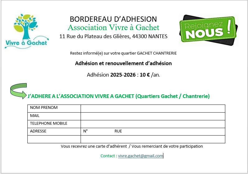 Si vous souhaitez adhérer à Vivre à Gachet, vous êtes les bienvenus !